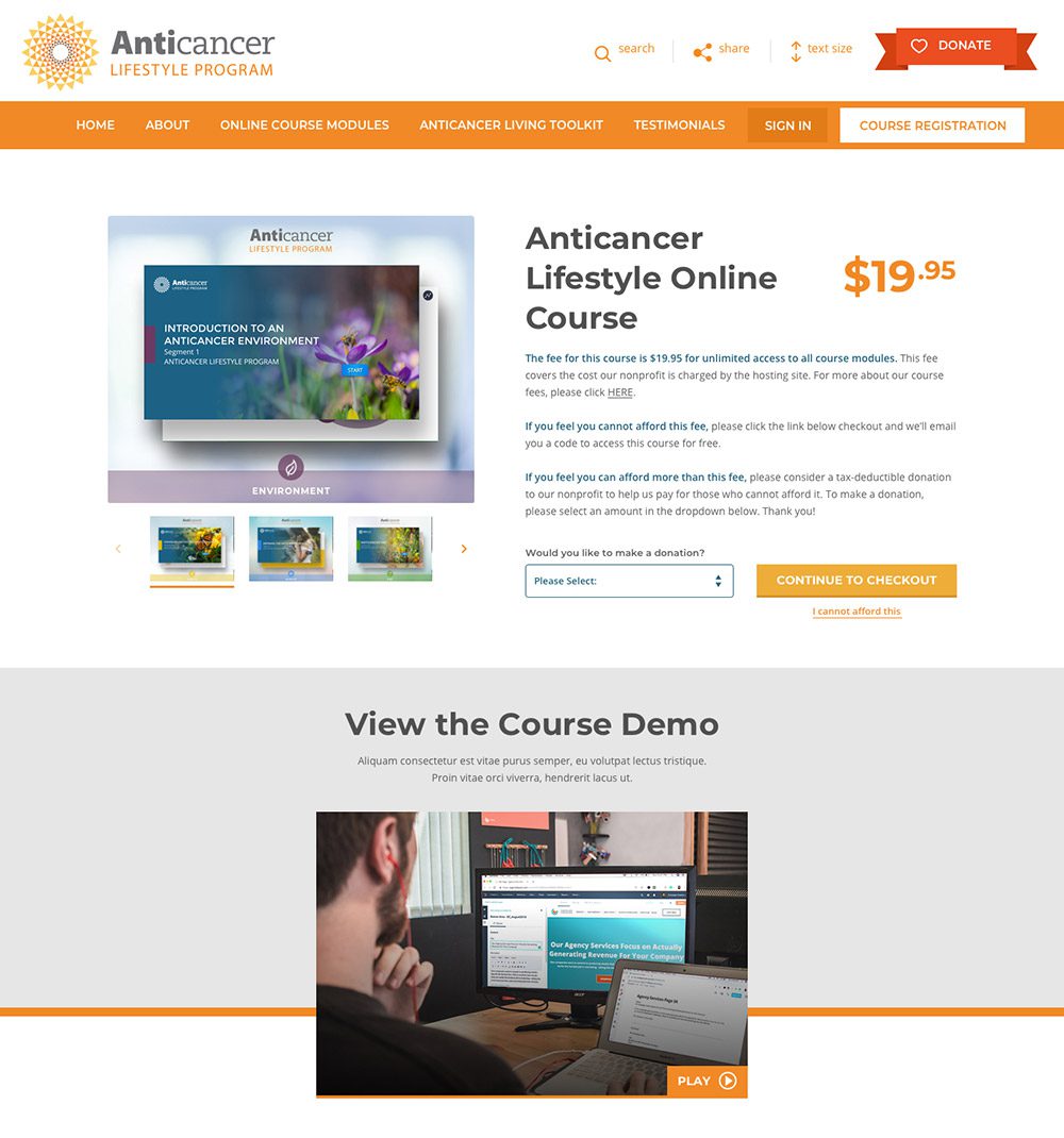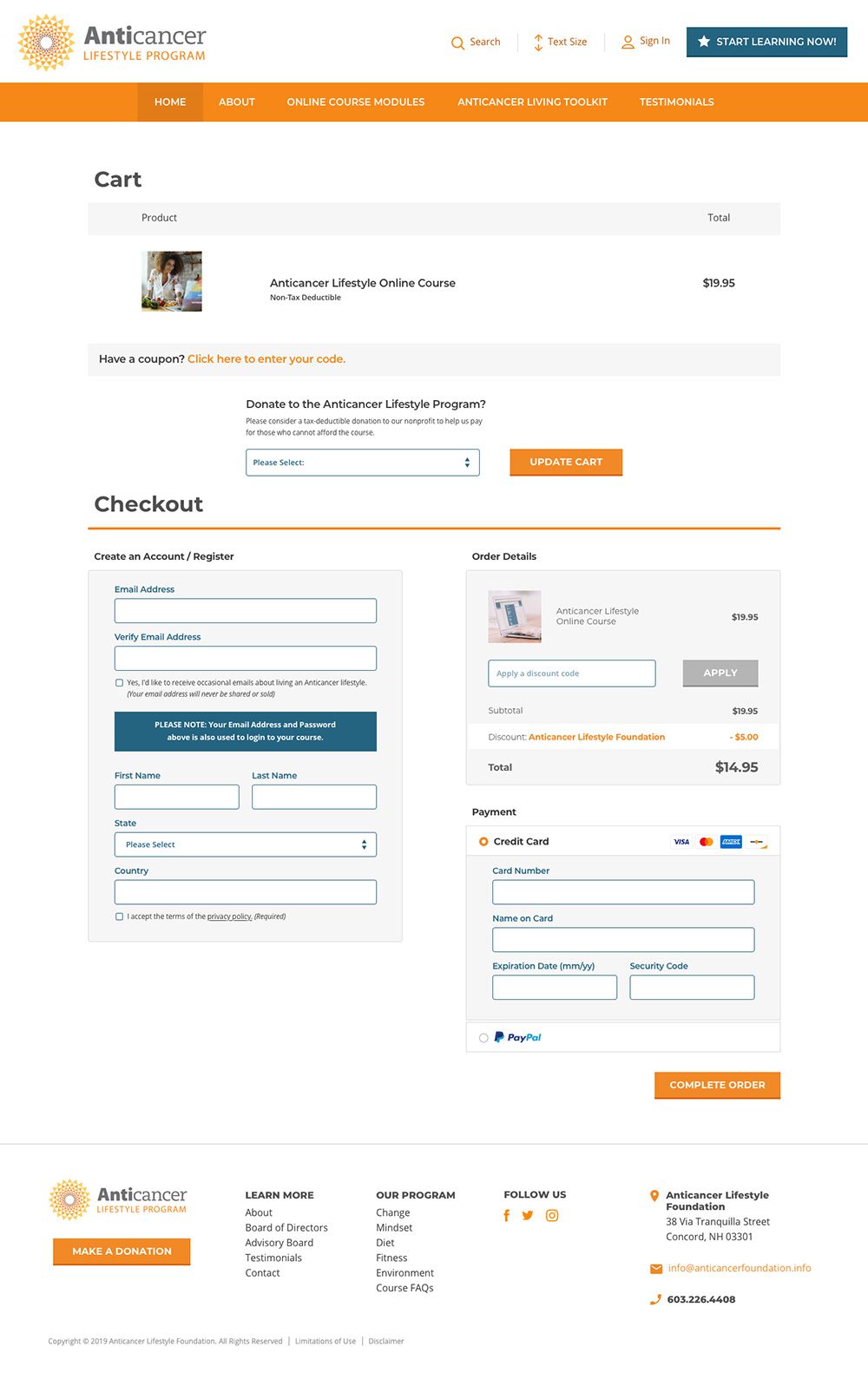 The Anticancer Lifestyle Program needed an update to their online course’s product detail page and checkout.