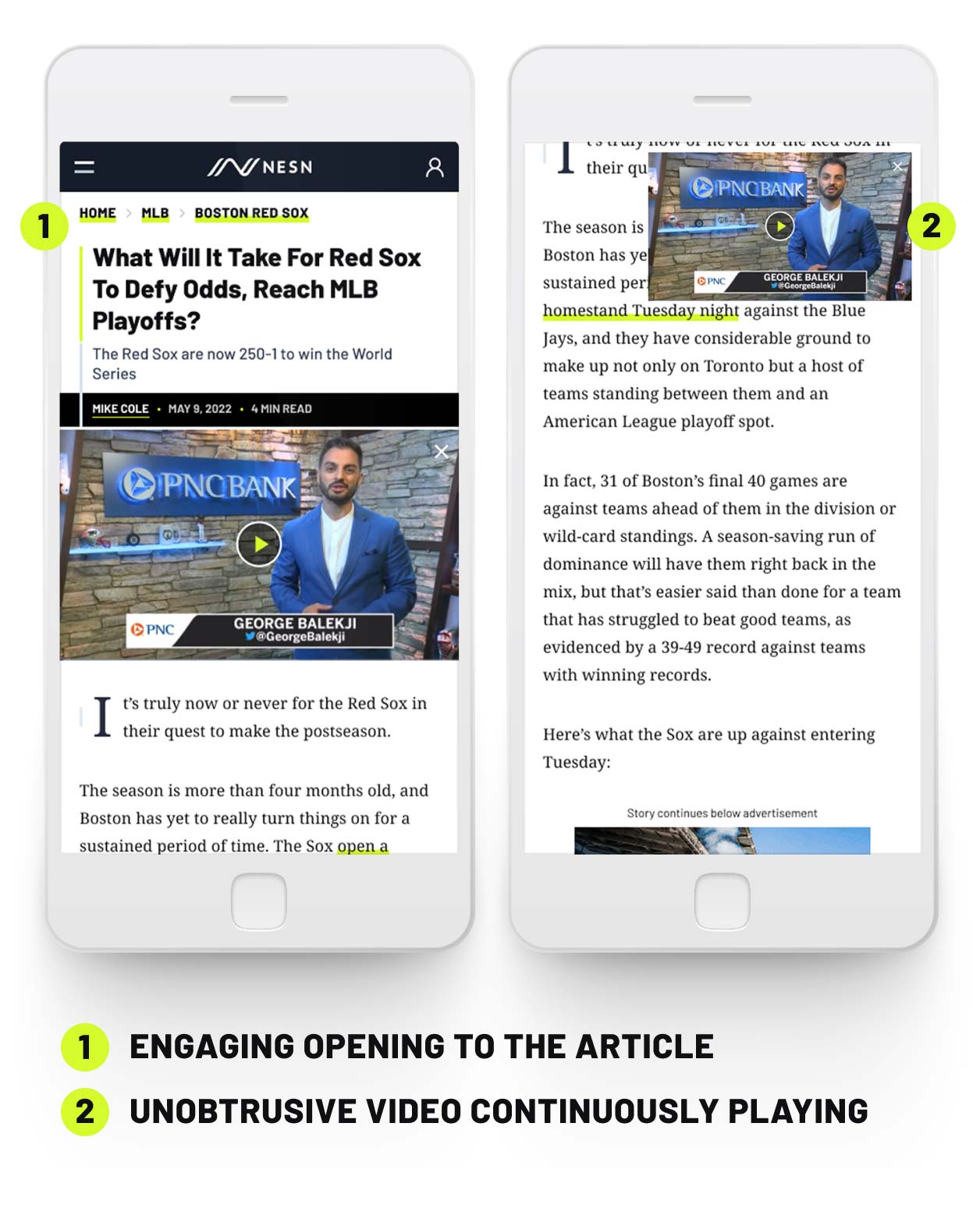 As the most trafficked pages in all of NESN Digital, we needed to vastly update the article pages on NESN.com. I had to balance Sales, Marketing, Content, and SEO, with a great User Experience. The main goal of the page is to make money but we also need to get the user to stay on the page longer and/or click to more pages during their session.