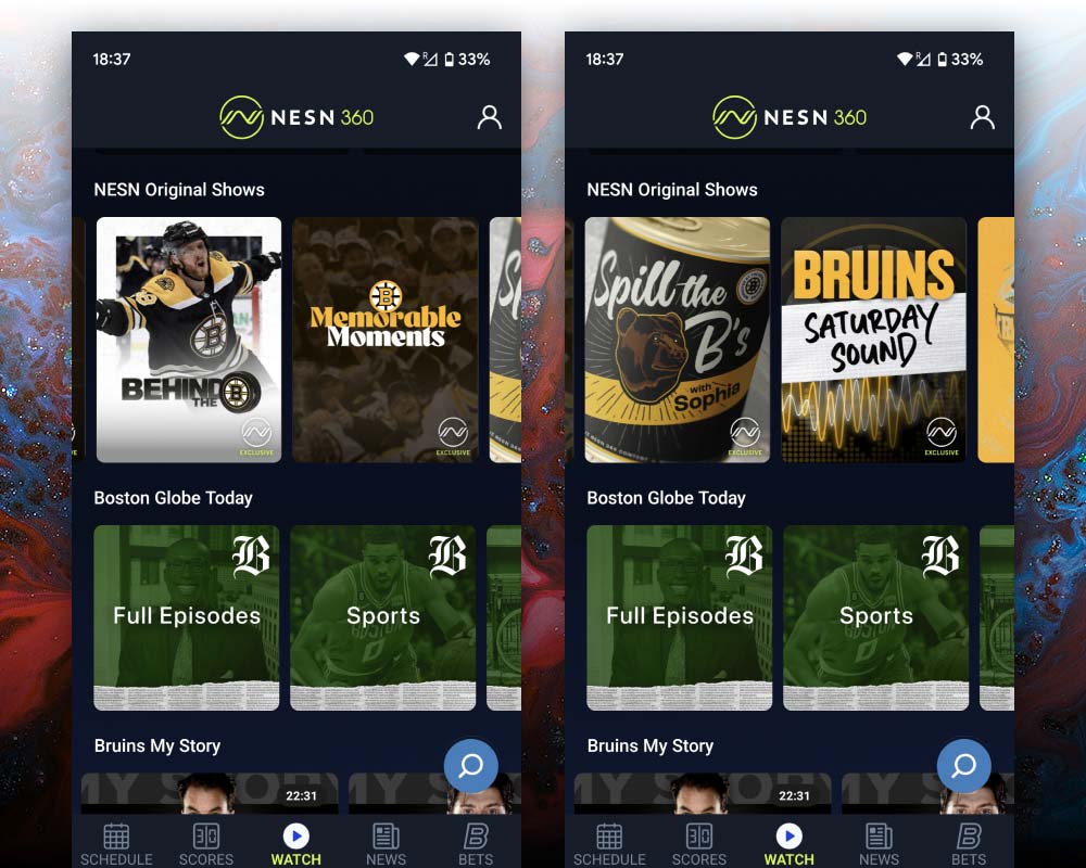 For NESN 360’s streaming service, I was fortunate enough to be able to design covers for NESN’s linear and 360 Exclusive shows. Getting multiple stamps of approval from the Boston Bruins on my take on things like “Behind the B” or “Call to the Hall: Ray Bourque” was a highlight of my entire career.