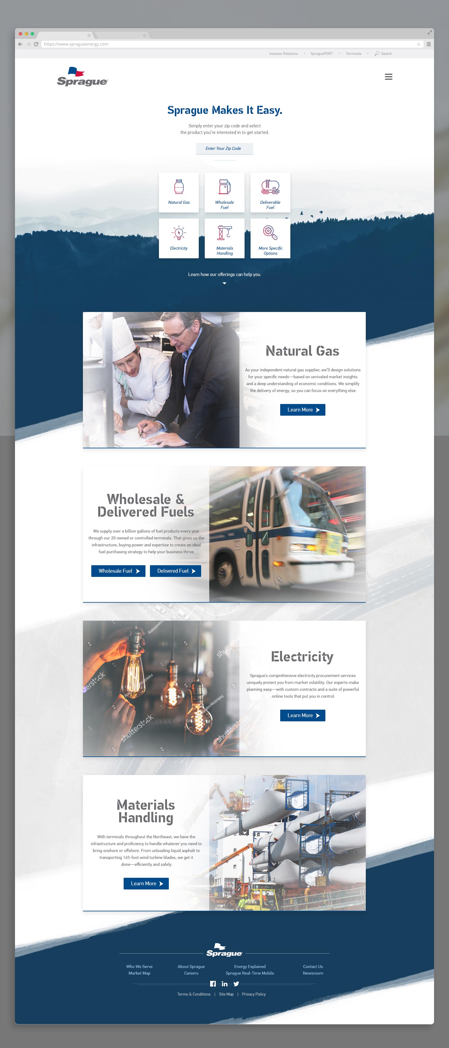 Sprague Energy was looking to launch a new website along with its new brand. They were looking for something simple yet bold and colorful that conformed to the new brand guidelines.